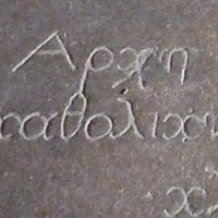 Transcription : arkhè pantôn eotin è katholikè kai aghia ekklesia.