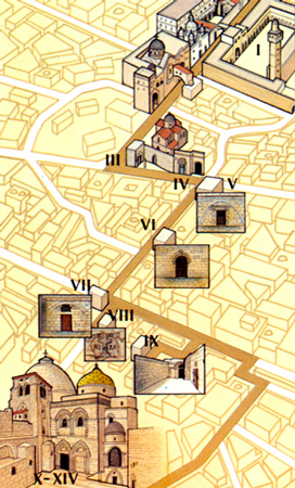 L’image d’en-tête provient du site : https://fr.wikipedia.org/wiki/Custodie_franciscaine_de_Terre_sainte [1] Dom G.M. Oury "Le Christ fêté par l’Eglise" Editions de Solesmes 1994 p.101 [2] Dom G.M. Oury "Le Christ fêté par l’Eglise" Editions de Solesmes 1994 p.69 [3] Source : "Le Christ - Encyclopédie populaire des connaissances christologiques" publiée en 1935 sous la direction des abbés Bardy et Tricot - Chapitre XXIV : Le Christ dans l’art [4] Voir Dom G.M. Oury "Le Christ fêté par l’Eglise" Editions de Solesmes 1994 p.107 [5] Dom G.M. Oury "Le Christ fêté par l’Eglise" Editions de Solesmes 1994 p.115 et 116 [6] Lire sur ce sujet "L’authenticité de la Via dolorosa et du Saint-Sépulcre à Jérusalem" en ligne ici : https://revuethomiste.fr/ [7] La Custodie franciscaine est toujours de nos jours en charge des lieux saints de Terre Sainte. Pour en savoir plus : https://www.custodia.org/fr/ |