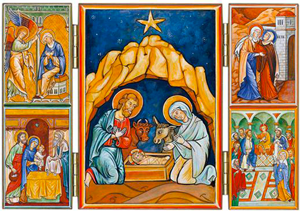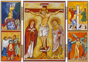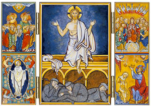 Cet article s’inscrit dans un vaste dossier : Via crucis, Via lucis Pourquoi parler du rosaire dans une série consacrée au Chemin de croix ? Extrait de la règle initiale des Templiers (XIIe siècle) La récitation du rosaire tel que nous le connaissons aujourd’hui date du XIIe, début du XIIIe siècle. Elle consiste à réciter des Ave Maria [1] tout en visualisant quinze épisodes choisis de la vie de Jésus, tirés ou non des évangiles. Ces quinze épisodes se découpent en trois phases : Dans les Mystères joyeux, au début de l’aventure, le principe divin surgit dans la conscience du sujet et se déploie. L’être est empli de la joie de l’Esprit saint. Dans les Mystères douloureux, le principe spirituel agissant comme un acide sur les aspects illusoires, le sujet est dépouillé de ses habits mondains. La mise au tombeau image le retour à sa réalité propre, hors des reflets de surface, dans la profondeur de l’être. Il doit faire le deuil de son ancien état. Aux Mystères glorieux, la totalité du sujet est purifié, c’est-à-dire dépouillé de l’ignorance. Il recouvre son intégrité en totalité y compris le corps, imagé par l’assomption de Marie et son couronnement, ce qui est parfois appelé obtention du corps glorieux. Rien de l’ancien ne subsiste. C’est la raison pour laquelle le corps tient une si grande importance dans l’ensemble. Tant qu’il n’y a pas eu le surgissement dans la conscience de l’ultime réalité, figuré par l’ange Gabriel insufflant l’esprit à Marie, rien de ce qui suit n’est possible. Quand bien même une personne, même sincère se flagellerait-elle continuement, cela ne lui serait d’aucune utilité, car ici, l’agent est le principe spirituel même. L’ombre ne peut rien pour l’illumination de l’ombre. La pratique du rosaire permet d’entraîner son esprit à vivre en vrai la sublime aventure que propose l’imitation du Christ. Dument préparé, il peut devenir une terre susceptible d’être ensemencée et transfigurée. Cette méditation est à cet égard un outil à ne pas négliger. Elle offre, une fois que l’on s’est affranchi des scories sentimentalistes, une carte sûre pour cet ultime voyage. Non seulement une carte, mais aussi un moyen de transport. Voyons plus avant la structure du rosaire pour en saisir l’effectivité. Le chapelet qui sert de support à la pratique du rosaire comporte un nombre défini de grains. – A l’entame, un Credo [2] pour la croix,