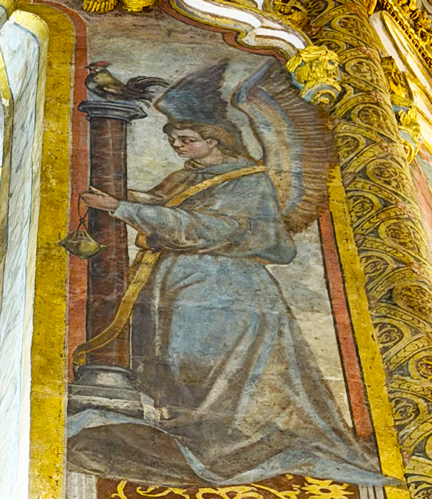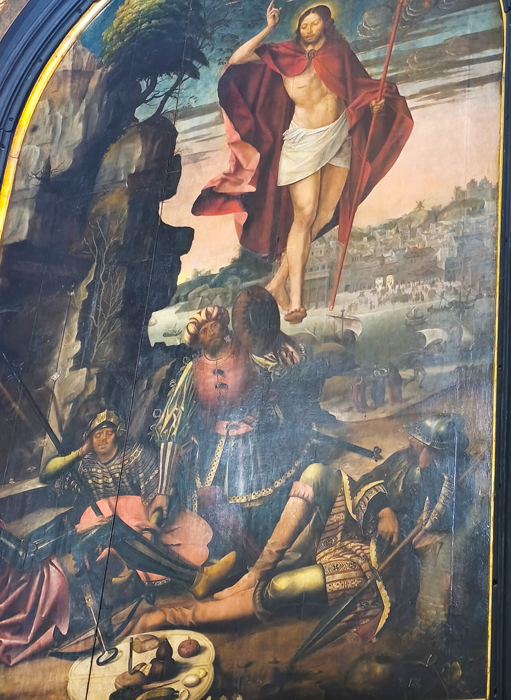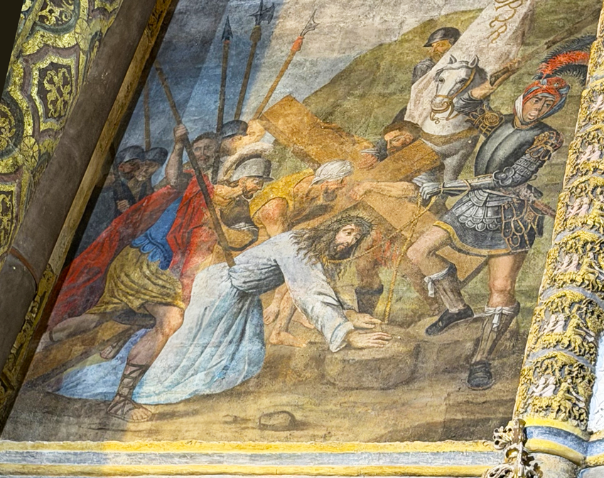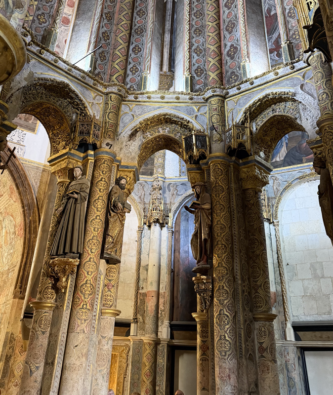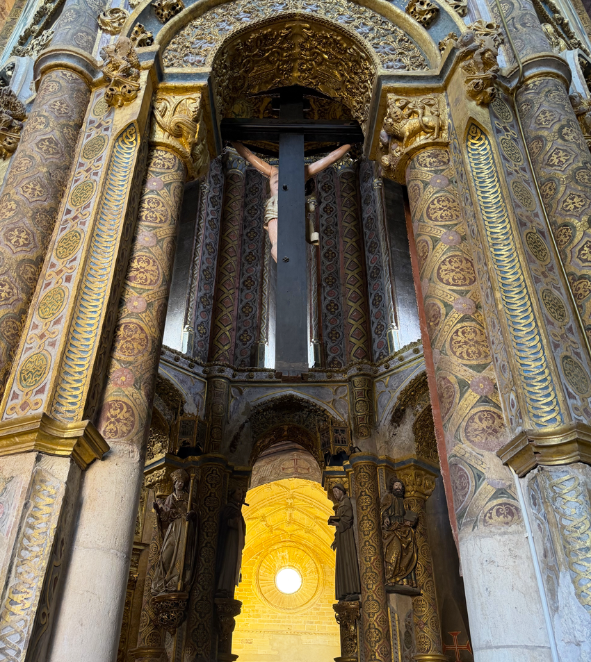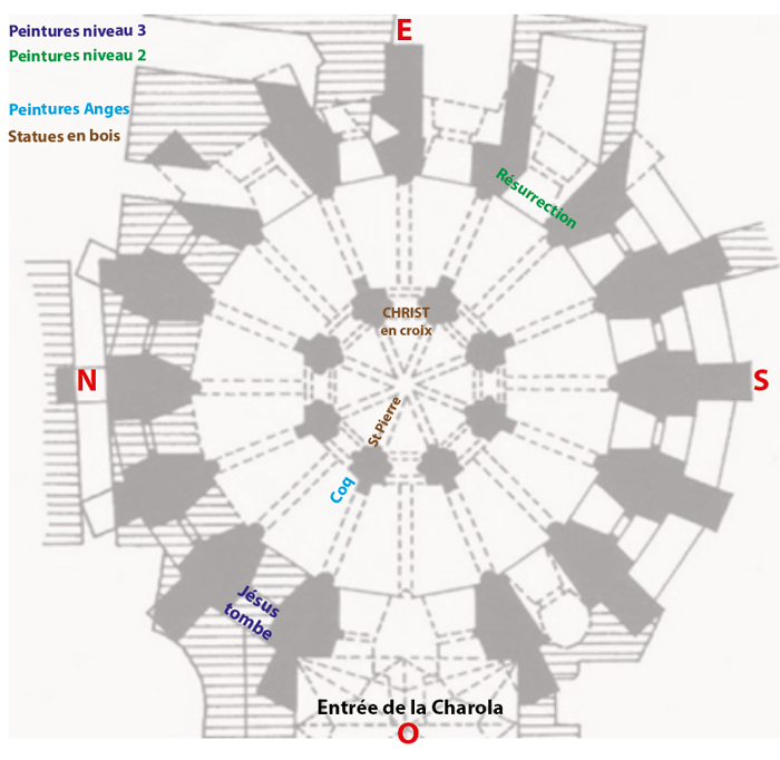 Cet article s’inscrit dans un vaste dossier : Via crucis, Via lucis Ces pages sur la Charola de la citadelle templière de Tomar au Portugal sont une simple visite en images. A chacun de se laisser inspirer par ces visuels parfois surprenants. Dans la Charola de Tomar, Pierre est représenté en bonne place à l’intérieur du tambour. Entre Antoine de Padoue et Jérôme. Pierre est barbu, il regarde le Christ en croix. De sa main gauche, il tient un gros livre. [1] Derrière lui, juste dans son dos, sur le mur extérieur du tambour, l’ange présente le coq. Celui qui par trois fois a chanté alors que Pierre prétendait ne pas connaître Jésus. Pour relire les textes des évangiles relatant cette scène : Reniement de Pierre Et si le visiteur se retourne, c’est Jésus qu’il voit chuter dans la montée du Golgotha. Et ce sont trois chutes qu’il est de coutume de représenter dans un Chemin de croix. Trois reniements, trois chutes, les Templiers de Tomar ont-ils voulu relier ces événements ? Pour relire les textes des évangiles relatant cette scène : Station 3, station 7, station 9 Mais revenons vers Pierre et plaçons-nous sous sa statue. C’est le Christ en croix qu’il regarde... lui qui n’était pas présent au Golgotha. Pour relire les textes des évangiles relatant cette scène : Station 12 ...mais aussi, face à lui, la résurrection. Cet événement incroyable qu’il fut dans les premiers, avec Jean, à venir constater à l’appel de Marie-Madeleine. Pour relire les textes des évangiles relatant cette scène : La résurrection A chacun de se laisser inspirer par ces simples observations. |