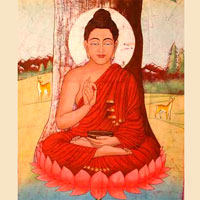 se rendit à Bodh Gayâ auprès de l’arbre que l’on nommerait plus tard l’arbre de la Bodhi (illumination). C’est là, pendant la nuit de pleine lune du mois de mai que le bodhisattva s’assit sous l’Arbre de la Bodhi, et qu’il parvint au nirvana, se libérant du cycle sans fin de la réincarnation et en devenant Bouddha. Il demeura sous l’arbre de la Bodhi quarante-neuf jours durant, méditant sur le sens de son éveil avant de parcourir le monde pour enseigner ses découvertes aux autres. On dit que Bodh Gayâ (situé dans le bassin du Gange) est le seul lieu sur terre pouvant supporter le poids de l’expérience de l’illumination. Après qu’il eut atteint le nirvana, le Bouddha demeura sept semaines durant sous l’arbre de la Bodhi éprouvant un grand bonheur. Ensuite, jusqu’à sa mort, pendant quarante cinq ans, le Bouddha enseigna le dharma, expression de la compassion du Boudha qui représente le principal moyen qu’il met en œuvre pour aider les êtres. La doctrine bouddhiste mérite notre réflexion, il faut consacrer beaucoup de temps à étudier et à méditer dans l’espoir de changer l’humanité. Dans le bouddhisme, on ne cherche pas à dépendre des autres, pas plus qu’on n’escompte leur aide. Tout individu doit se comprendre, voir en lui très clairement et progresser par cette seule compréhension. Le Soi n’est édifiable que sur la Loi et celle-ci, inhérente à la vie de tout être, n’existe pas en dehors de lui. |