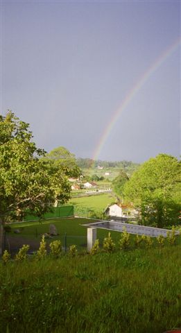 Nuit un peu agitée, je suis réveillé par la lumière qui filtre entre les persiennes de la chambre. Je regarde l’heure, il est 8 h, c’est une heure surprenante pour moi, il est rare que je sois encore sous la couette à une heure pareille... ! J’entends partir l’épouse de Luis et il doit m’attendre pour le petit-déjeuner. À 8 h 30, nous prenons le café ensemble et un petit-déjeuner qui va m’aider à faire face au mauvais temps... Il pleut, il y a du vent et curieusement malgré cela, la brume est si basse qu’elle semble traîner, accrochée à la cime des arbres... Il est neuf heures, j’enfile mes guêtres et Luis m’aide à me vêtir du poncho. Il m’accompagne au bas de sa propriété, là où justement les flèches jaunes du Camino indiquent le passage. Il pleut toujours, après l’émotion d’une accolade, Luis reste sous son parapluie au milieu du chemin pour me regarder partir. Je me retourne une dernière fois, un signe de la main et je suis seul sur un sentier à peine marqué. Il commence aussitôt à grimper au milieu d’une végétation importante et qui semble vouloir étouffer le Camino. Je me glisse littéralement entre de hautes fougères et des bosquets gorgés d’humidités. J’espère que mon poncho ne s’accrochera pas, c’est vraiment pas le moment. L’eau ruisselle sur lui, coule sur mes guêtres avec une telle intensité qu’après une heure d’un véritable crapahutage, j’ai les pieds humides... ! C’est une des rares fois où cela m’arrivera... Le Camino a retrouvé un aspect un peu moins forêt vierge et malgré la pluie tout va bien. Il faut vous dire que tous ces inconvénients ne peuvent obscurcir le plaisir d’être là. Je n’ai pas de goût pour le masochisme, mais la beauté de l’environnement, associée à la drôle de lumière du ciel, provoque des couleurs exceptionnelles qui font tout oublier... Ne reste très sincèrement que le bonheur de vivre... Il m’arrive dans ces moments-là, d’avoir la certitude d’être au bon endroit, là où je dois être dans une osmose totale avec tout ce qui m’entoure... Merci à LUI... En redescendant de Transmonte, je trouve un bar ouvert au bord de la route. Il est environ 10h30,“ bons dia... ”, c’est le bonjour en galicien... Les hommes présents semblent distants et répondent sans montrer de curiosité pour mon accoutrement. J’engage des banalités avec un monsieur plus très jeune qui est accoudé au comptoir à mes côtés. Il semble aimable, mais sans plus. Très vite, les trois ou quatre personnes qui semblent des habitués retrouvent le silence. Je mange doucement mon sandwich accompagné d’un verre d’eau et d’un grand crème comme dessert... La pluie a enfin cessé quand j’arrive à Negreira et le soleil prend le temps de m’accueillir avec un magnifique double arc-en-ciel. Le refuge est neuf et agencé comme une résidence, malheureusement il est à l’extérieur du village et il faut faire un kilomètre au moins pour trouver un restaurant. Au rez-de-chaussée, je trouve un salon d’accueil avec des fauteuils confortables, une cuisine et des sanitaires, au premier, deux dortoirs de 15 lits individuels en bois et aux sommiers confortables. Je suis pour l’instant seul et ma prochaine nuit sera confortable. Nous resterons donc cinq pèlerins dans cette confortable auberge. La communication est un peu superficielle bien que les sourires s’échangent facilement. Nous n’aurons pas l’occasion d’être plus intime, l’une est en vélo, les autres semblent vouloir éviter de finir à pied jusqu’au “ bout du monde ”. J’ai la chance de n’avoir aucun problème physique et à ce jour en étant à l’écoute de mon corps et de ses réelles possibilités, j’ai vraiment la douce impression de pouvoir aller au bout du monde à ce rythme-là... La soirée traîne en longueur et c’est dans un silence profond que je peux feuilleter le livre d’Aldous Huxley, la philosophie éternelle. À vrai dire, ce livre qui accompagne parfois mes réflexions, je ne l’ai pas ouvert très souvent pendant ce voyage... ! Le Camino de Santiago n’a pas besoin de support intellectuel, le vivre dans la simplicité et dans son exigence naturelle suffit largement à retrouver une spiritualité de l’universel... Il va faire encore froid cette nuit, mais le refuge semble bien isolé, sans chauffage, la température est bonne. J’aurais souhaité demander une couverture, mais nous resterons dans le refuge toute la journée sans jamais voir notre hôtesse... C’est la première fois que cela m’arrive... Je dors déjà, merci à LUI. |