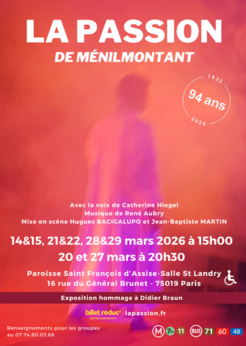 En 2026, le spectacle a lieu à la paroisse St François d’Assise (salle St Landry) dans le 19e arrondissement de Paris.