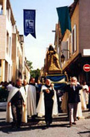 Nous avons tout calculé pour être à Chartres pour le 15 août ! Nous suivons la procession. La Vierge du Pilier est portée à travers la vieille ville par les Chevaliers de Notre Dame. (…)
