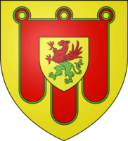Son blason : "D’or au gonfanon de gueules frangé de sinople sur le tout aussi d’or au griffon coupé de gueules et de sinople" |